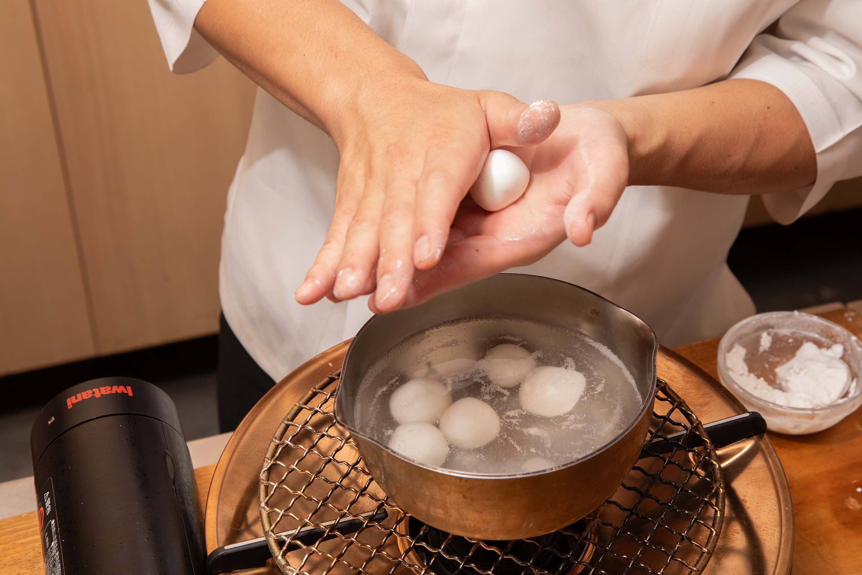 [c]団子をつくり茹でている様子
