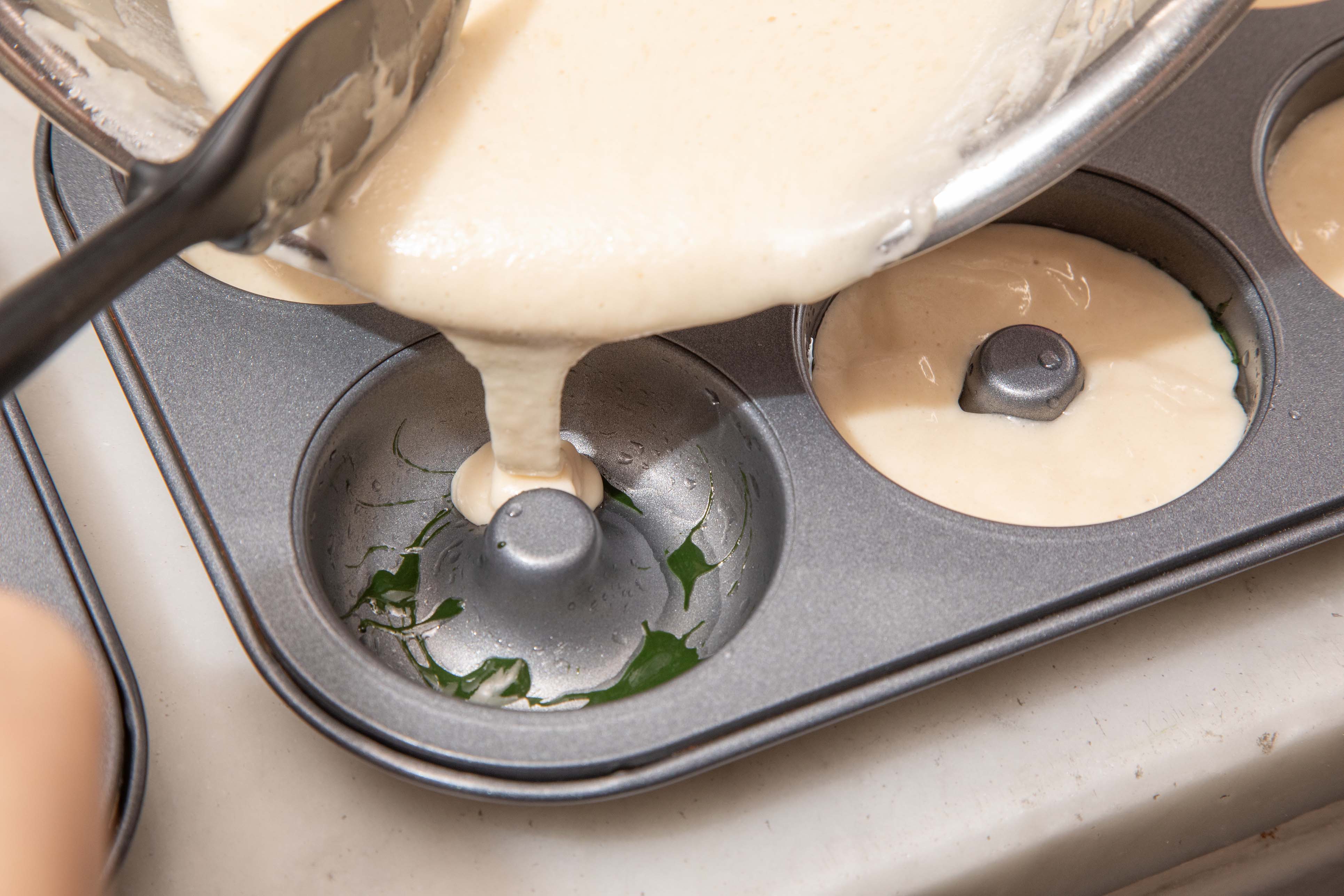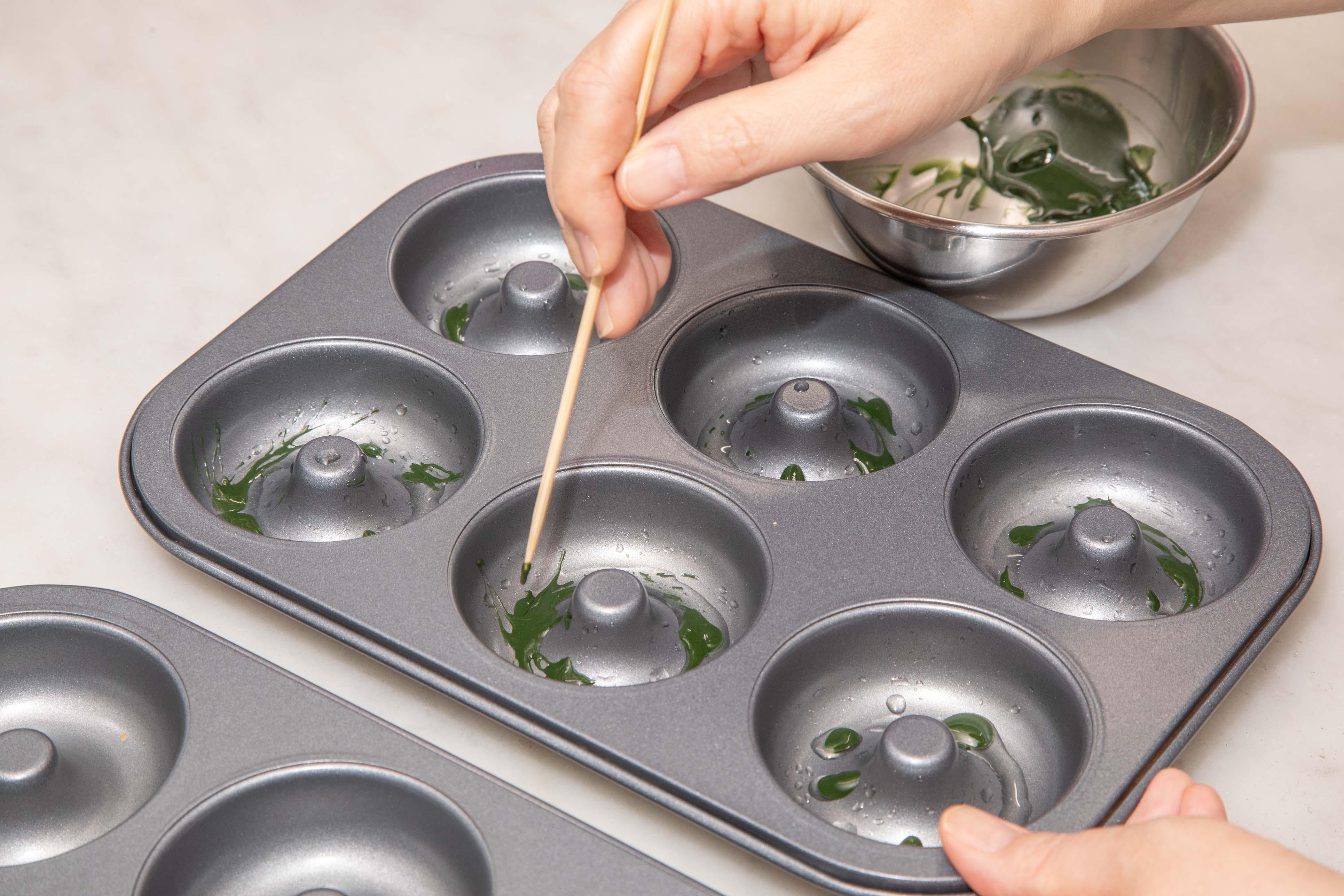 ④ ドーナツ型に植物性油(分量外)を敷いて、手順3の抹茶